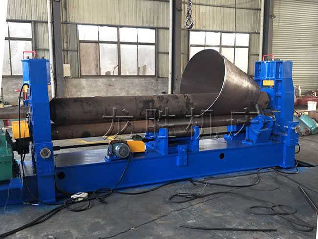 滾圓時(shí)通過(guò)電動(dòng)機(jī)、減速機(jī)帶動(dòng)兩下輥進(jìn)行。